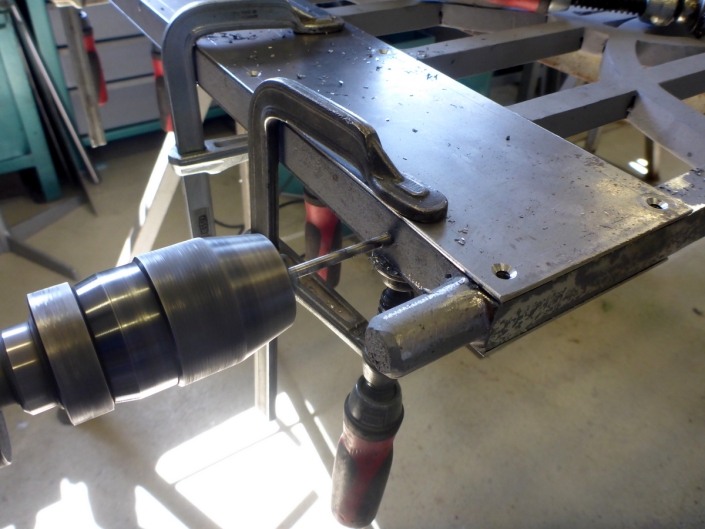 Die verrosteten Teile wurden gewärmt und geöffnet. Die oberen Bänder der Türe wurden aufgeschnitten – diese waren fix mit dem Türstock verschweißt. Danach wurden die Türflügel vermessen und in die Werkstätte transportiert. Der Türstock wurde vor Ort gereinigt, zweifach grundiert und zweifach deckbeschichtet. Die Türflügel wurden gestrahlt und technisch saniert. Dabei wurden die angeschweißten und teilweise schon gebrochenen Flacheisen im Bodenbereich entfernt. Es wurden beiderseitig je zwei neue Bleche angefertigt und in historischer Form aufgenietet. Zusätzlich wurden im Rahmen Entwässerungslöcher im Hohlraum der Bodenbleche in die Türrahmen eingebohrt. Das Türschloss wurde saniert und neu gefettet. Die Schlossabdeckung war aufgeschweißt, wurde entfernt und in eine schraubbare Ausführung umgebaut. Die Zylinderabdeckungen wurden gereinigt, neu beschichtet und wieder montiert. Der Zylinder wurde gereinigt und wieder montiert. Die Drehpunkte der Bänder wurden geändert, sodass beide Türflügel wieder dieselbe Einbauhöhe haben. Zusätzlich wurden zwei neue Bandrollenhalter geschmiedet und in schraubbarer Ausführung montiert. In die gereinigten Bodenpfannen wurden zwei neue Distanzen samt Stahlkugeln eingebaut. Dadurch laufen die Türflügel leichter und sind auch langlebiger, auch weil es durch die Kugeln weniger Abnutzung an den Bodenzapfen gibt. Die Oberflächen der Türflügeln wurden gestrahlt, nach dem Ausrichten der Rahmen und der technischen Sanierung gereinigt, zweifach mit Henekote Haftgrund beige und lichtgrau grundiert und zweifach mit Mipa Venti HS 3 in 1, RAL 6005 Moosgrün deckbeschichtet. Die Türflügel wurden wieder geliefert, montiert und eingestellt. Der Spalt zwischen der Bodenschiene und dem Stein wurde mit einem Inotec – Kleber geschlossen.